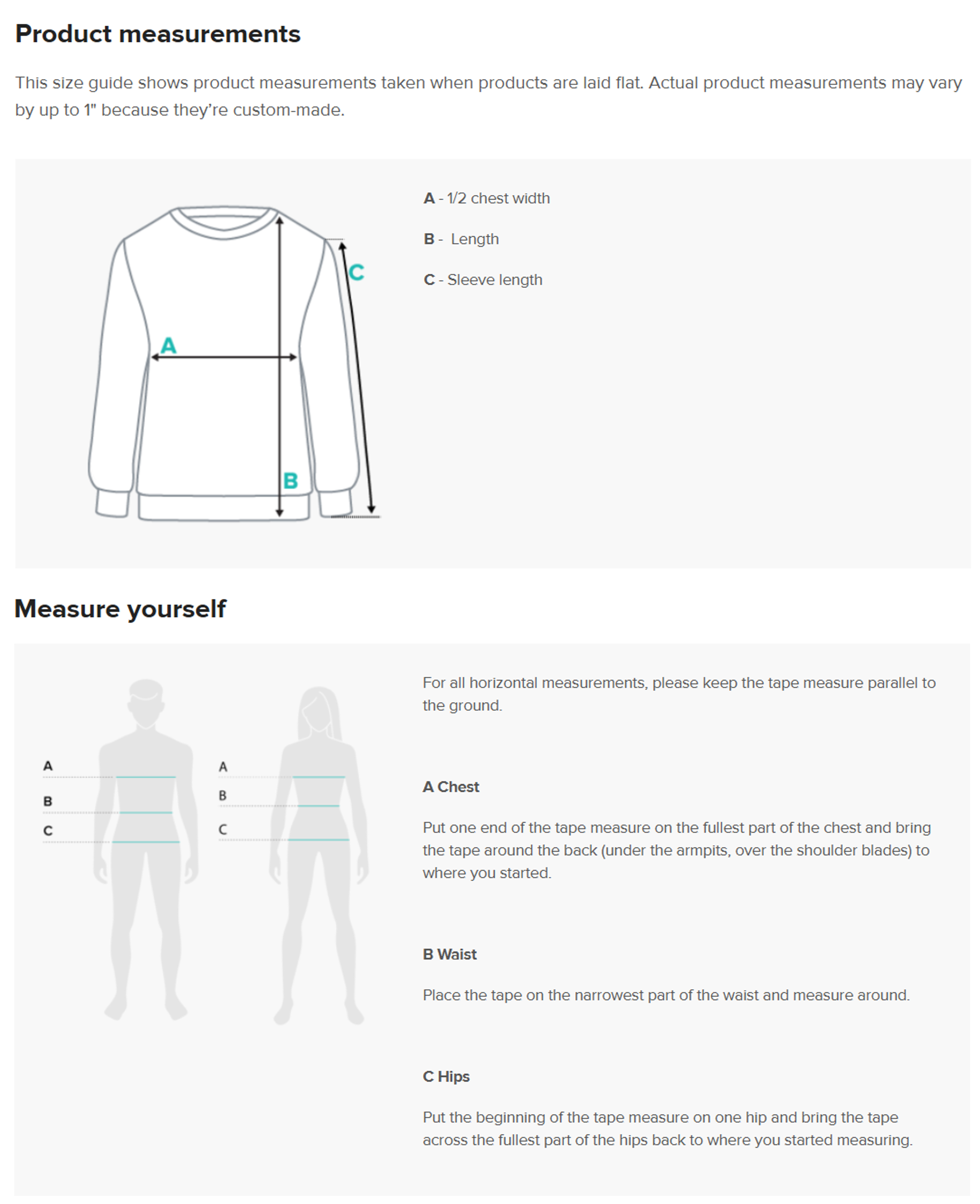 As our products are made on demand just for you, selecting the right size is crucial. We cannot process returns or exchanges if you order the wrong size.